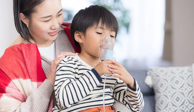 喘息の90%は6歳以下に発症します。喘息は気管支壁でアレルギー性炎症が持続的におきている状態なので、乳幼児期にその炎症を抑え、発作を起こさなくすることがその後の経過に大きく影響する可能性があるので早めに診断し、治療することは重要です。